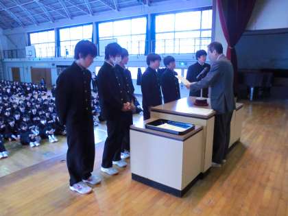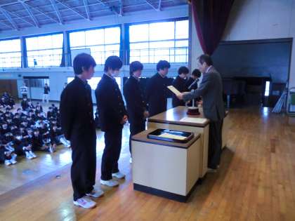 続いて男子ソフトテニス部の、個人戦の表彰です。