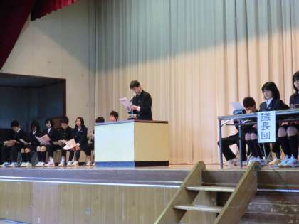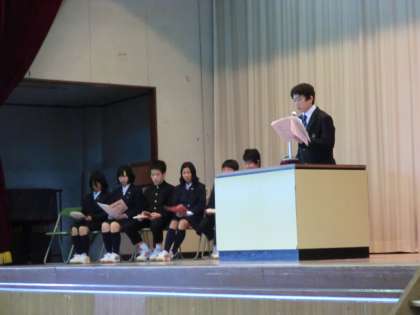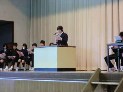 生徒会本部の後、各学年の学級委員長からの発表です。