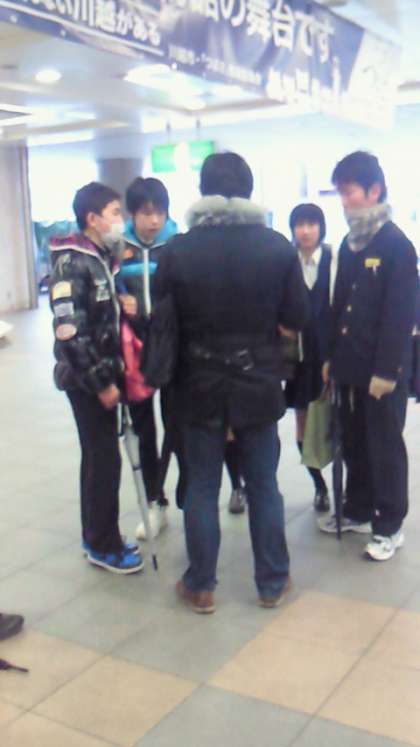 鶴田先生にチェックを受けている班のスナップです。帰りは、電車がスムースに走るとよいですね。
