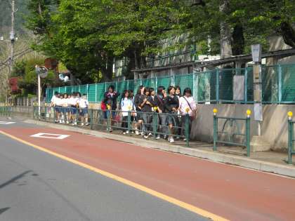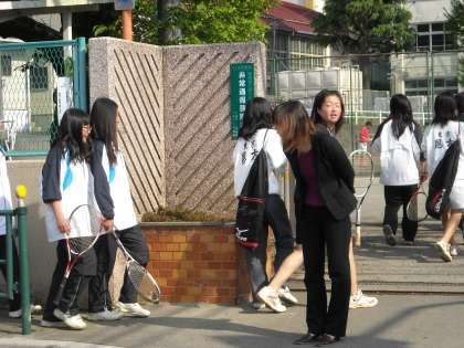 テニス部が多目的広場の朝練から帰ってきました。1年生も本入部です。