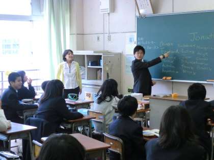 ALTのジョナサン先生と高橋先生による授業です。