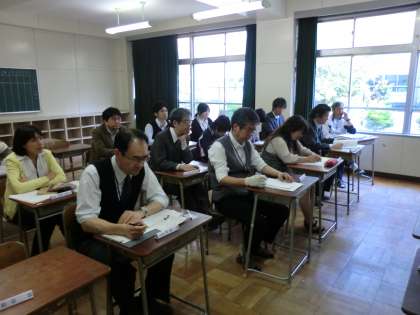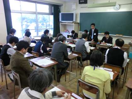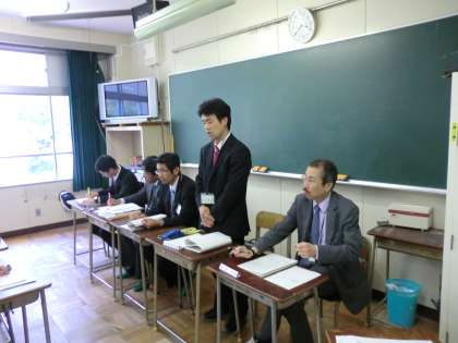研究授業終了後、先生方は視聴覚室で研修会を行いました。