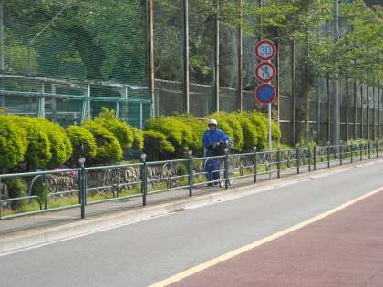 徒歩の生徒は陣馬街道を直進して来る者も多いです。