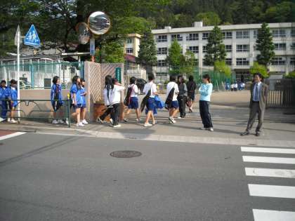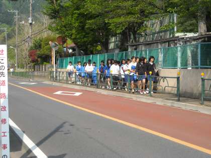 多目的広場で朝練習をしていたソフトテニス部が戻ってきました。