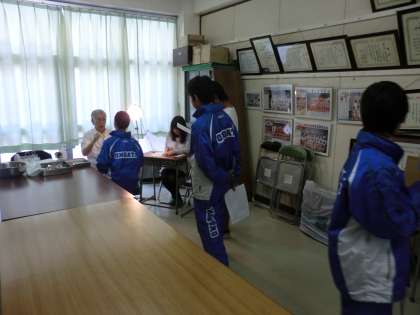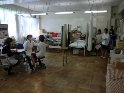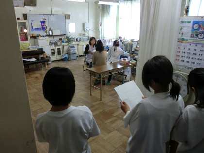 体育の授業中だったので、体育着のままで検診を受けています。
