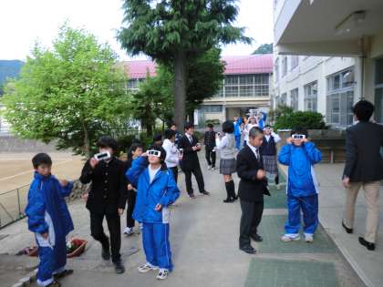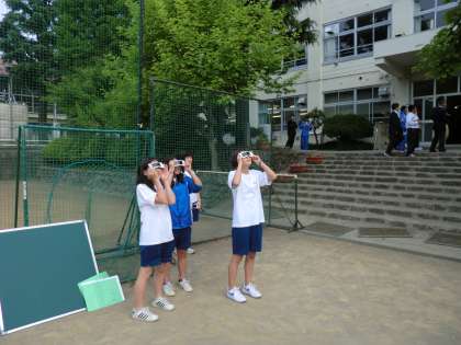 7時から、希望者が校庭に集まって、金環食の観察開始です。
