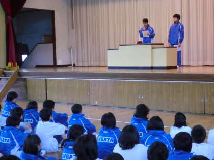 役員会から勇払中学校からの手紙の紹介と、自転車の乗り方について中央委員会で話し合われた内容についての報告がありました。