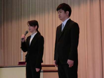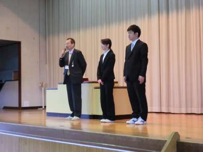 校長先生から、教育実習の社会科の荒井先生と、英語科の小栗先生の紹介がありました。三週間恩中で頑張ります。
