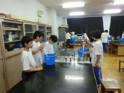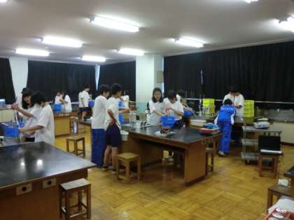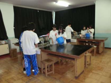 齋藤先生の指導で、心臓のポンプ機能について実験していました。
