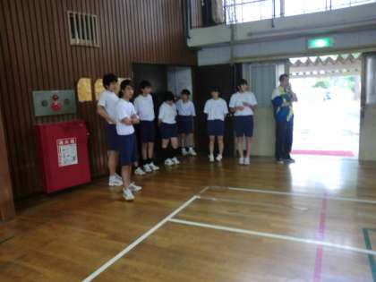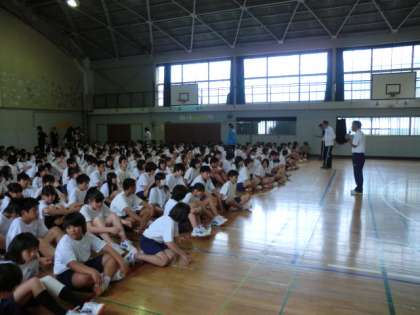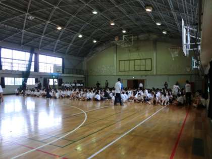 4時間目にグラウンドで行われる予定でしたが、雨のために体育館に変更しました。