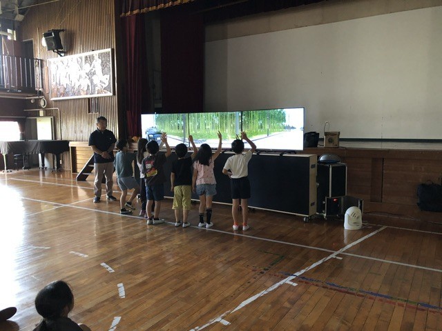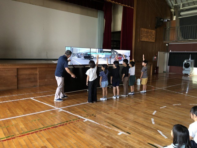 2年生は歩行者シミュレータの体験授業を行いました。画面に向かい、多くに車や自転車が通る道を歩いていきます。横断歩道では左右の確認をして、ドライバーさんとアイコンタクトを取り、手を挙げて渡ります。途中、自転車が飛び出たりとハッとする場面もありました。しかし、講師の方から、「自分の身は自分で守る。そのためには周りをよく見る。」と教わっていたので、しっかりと止まることができました。ぜひ、今日の体験を毎日の生活に活かし、交通事故のないよう気をつけていきましょう。