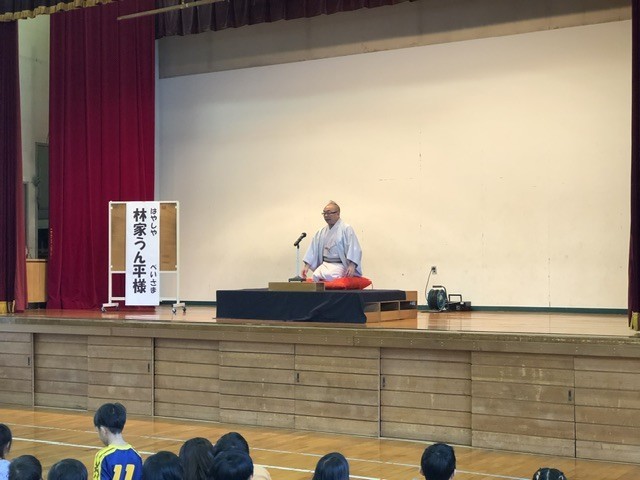 10月18日(土)、道徳授業地区公開講座がありました。講師として、噺家の林家うん平師匠が来校されました。落語家をめざしたきっかけや、夢を追いかけて高校で落語研究会を立ち上げたことなどキャリア教育に関わるお話をしていただきました。その後は落語を一席披露していただきみんなで楽しい時を過ごしました。ありがとうございました。