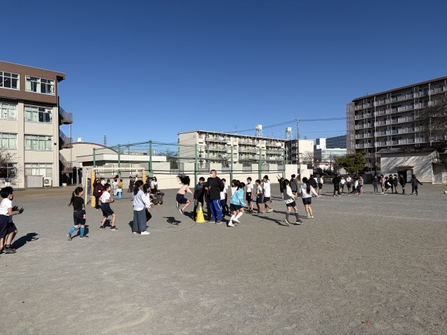 昼休み、長縄集会がありました。長縄をすることでクラスのまとまりをつけることをねらいとしているので、他クラスと競争するのではなく、クラスで目標を立ててそれを目指して頑張ります。休み時間には校庭で練習するクラスもどんどんと増えていきました。