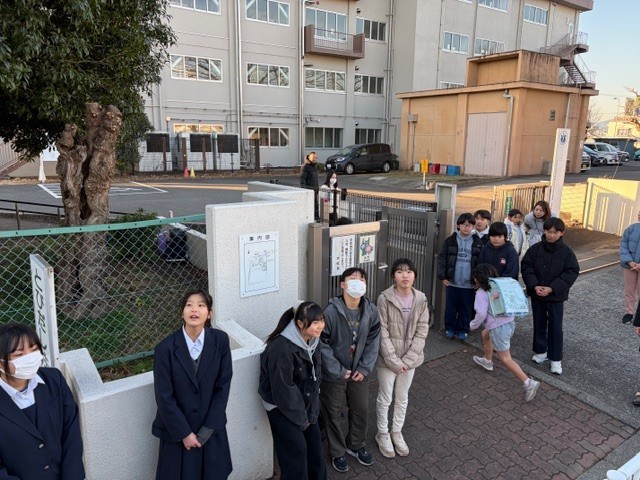 昨年に引き続き今年も第一中学校と一緒にあいさつ運動を行いました。初めは恥ずかしそうにしていた子どもたちもあいさつを重ねる毎に、元気よく声を出してあいさつしていました。声を掛けられた子どもも始めはびっくりしている様子でしたが、徐々に声が出てきました。