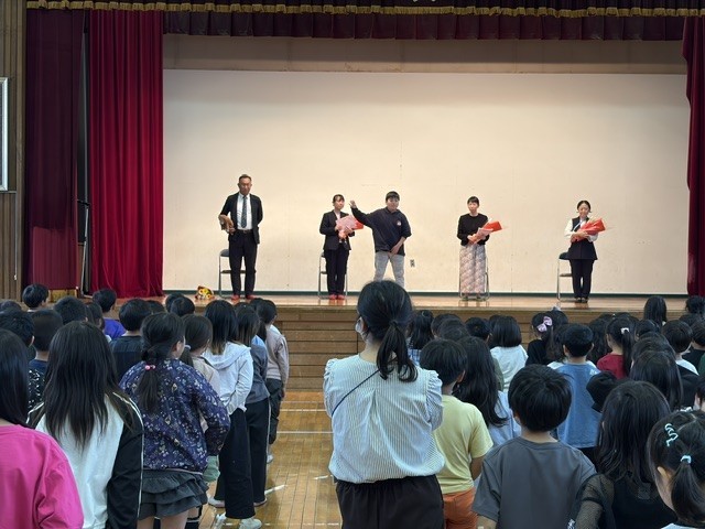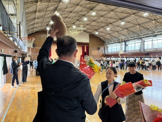 大和田小学校を去られた方をお迎えしての離任式がありました。体育館に入ると子どもたちの大歓声。3月末にお別れして3週間あまりですが、懐かしい先生方にお会いできて大喜びです。お一人お一人から言葉をいただき、子どもたちも懐かしさ倍増です。またどこかでお会いできるとうれしいですね。今までありがとうございました。see you !