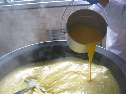 画像二枚目は、スープに卵を入れているところです。ちょっと見ずらい