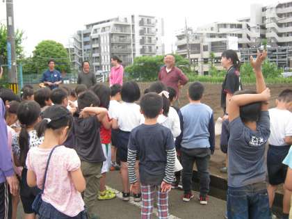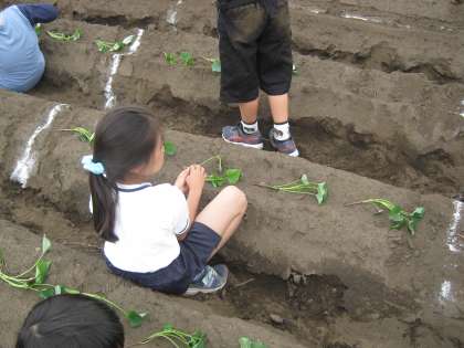 2年生が生活科の時間に横溝さんの畑で『さつま芋の苗』を植えました。