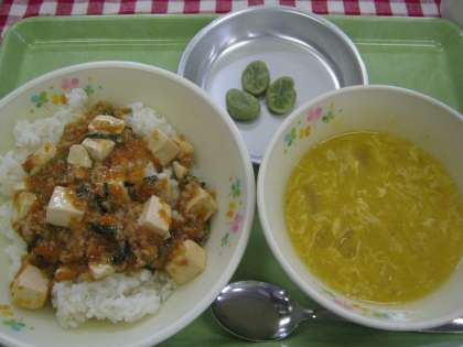 1年生がサヤむきした『そらまめ』を使って作りました。