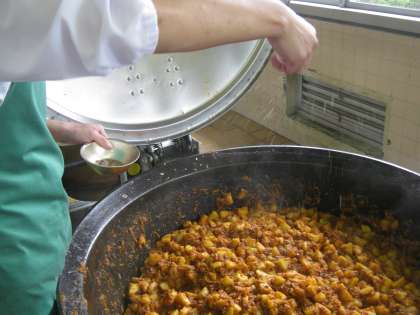 給食室では、野菜の皮などの生ゴミ、ビニール袋、ぺットボトルなど…。