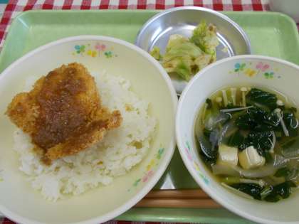 今日の給食は『みそかつどん』をいただきました。