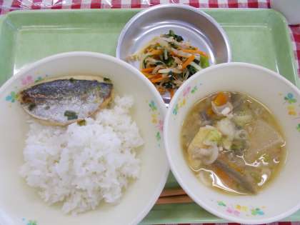 今日の給食は『アジのねぎしおやき』をいただきました。