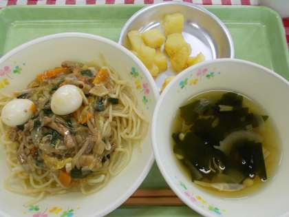ということで、今日の給食は『あんかけやきそば』をいただきました。