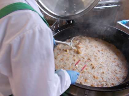 掲示したポスターを見て、毎日の食事に五つの輪の食べ物が
