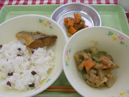 今日の給食は『あずきごはん』をいただきました。