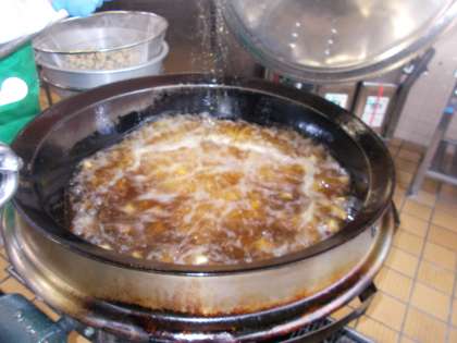 さつまいもを一本ずつ乱切りにしてから水によくさらします。しょうゆ、砂糖、酢でタレを作ったら、水分をよく切って素揚げにしたさつまいもに絡め黒ごまをかけたら出来上がり!
