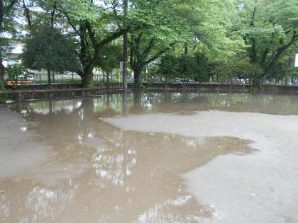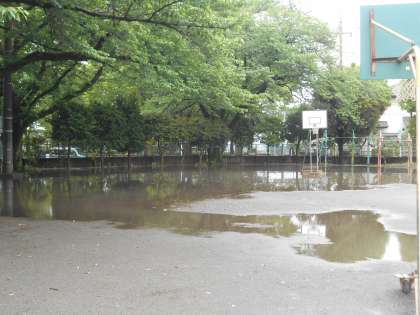 校庭には池みたいな水たまりができました。でもなんか趣があります。