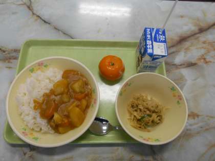 今日も定番人気メニューのカレーライス。そして大根ごまサラダ、冷凍みかん。冷凍みかんはうれしいけれど、うかつに食べるとこめかみがキンキンになります。できれば最初に皮をむいてひとふさごとに分けて解凍をうながしたいところ。