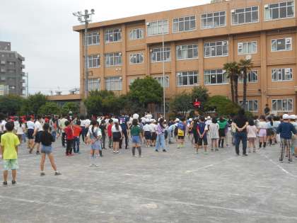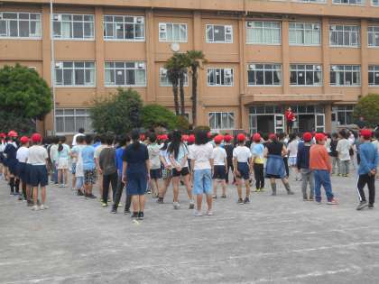 今日は歌の練習をしました。校歌が校庭に響きました。