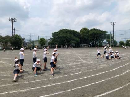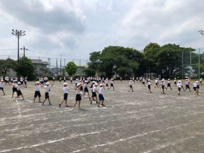 3・4年生。運動会、ソーラン節の練習です。後1週間。かなり仕上がり、退場の練習もしていました。