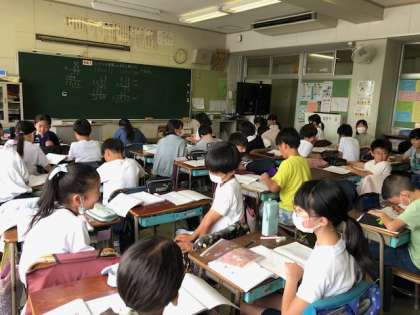5年生。算数少人数で3つに分かれて勉強しています。