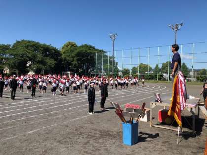 整理運動、得点発表、優勝旗返還の練習です。