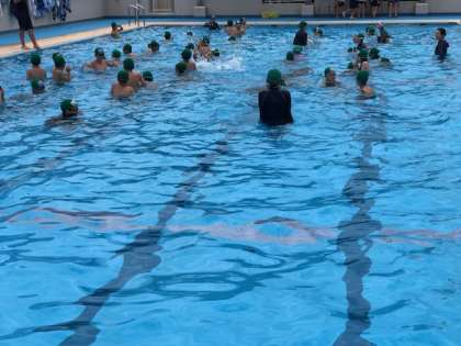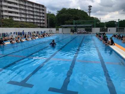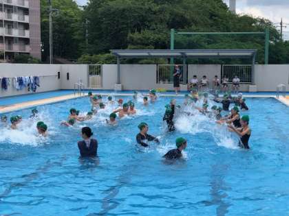 1年生が入るな私たちも。5年生も5・6時間目プール開き。思った以上に寒くてキャーキャー。