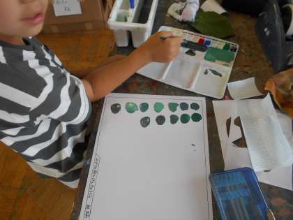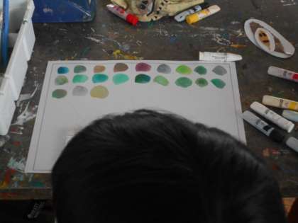 3年生の図工です。すてきな色をつくっていました。
