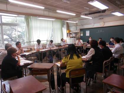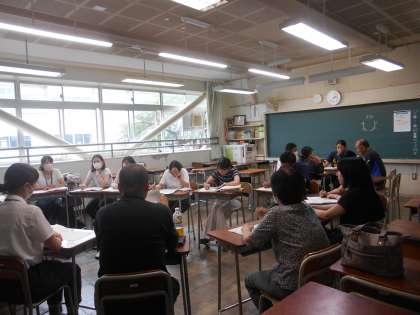 今日は、第一中学校、第八小学校、高倉小学校、大和田小学校の先生たちが第一中学校に集まりました。この4校は第一中学校区の小中一貫教育で連携しています。