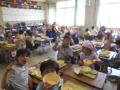 2年生の教室をのぞいたら、けっこうみんな冬瓜スープがおいしかったと言っていました。うれしいねえ。