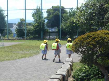 今日は緊急時に方面別で集団下校をする訓練をしました。本来は全校児童が校庭に集合してから行いますが、気温が高いため校庭には出ず、各教室から放送の指示により下校しました。職員も地域の担当地区をまわり、児童の安全確認を行いました。