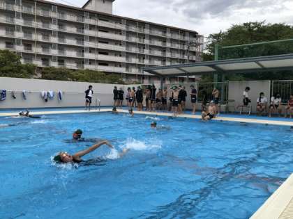 5年生。水泳の授業です。皆25mをばんばん泳いでいました。ただ、もっと太陽が欲しかったな。