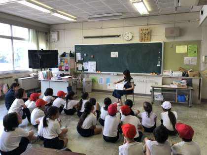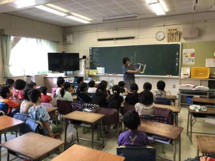 2年生。図書ボランティアさんによる朝の読み聞かせです。2年生もよくお話しを聞いていました。