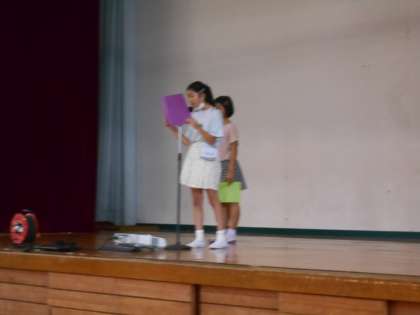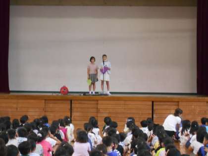 3時間目に一学期の終業式をしました。5年生代表児童による1学期に頑張ったことなどの話がありました。りっぱ