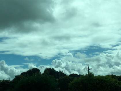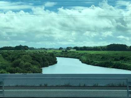 渡良瀬川を渡って栃木県に入りました。すごい雲。バス内はまだまだレク中