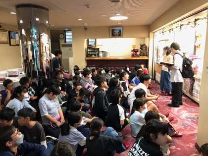 ホテル山月に到着し、開校式を行いました。2泊3日よろしくお願いします。