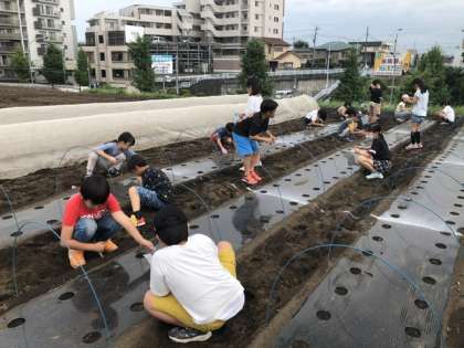 3年生が農家の方から教わって、だいこんの種まきをしました。1人40粒。丁寧に4粒ずつ植えていきました。これからの成長が楽しみです。