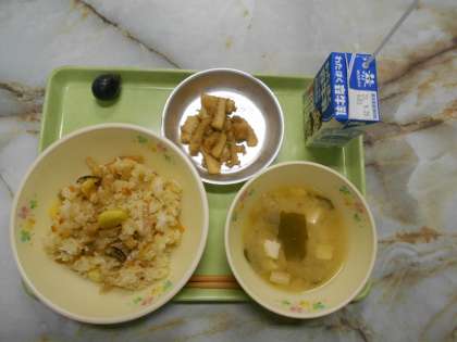 吹き寄せおこわ、栗が入ってるぜ。うまい。
