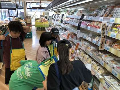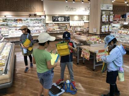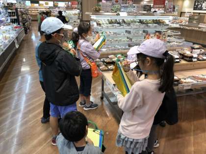 お店の中では商品の展示の工夫や働いている人の様子などについて、子供たちは班で協力しながら見つけていました。