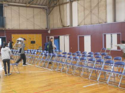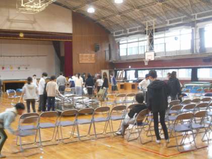 図工の展示ブースと、音楽発表の体育館の準備でした。6年生のみんな、ありがとね。
