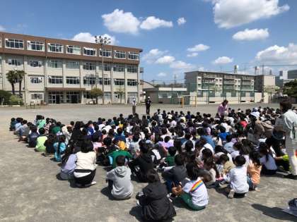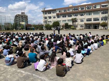 第1回目の避難訓練です。「お・か・し・も」の約束をしっかり守りどの子も上手にできました。初めての1年生もとても立派でした?